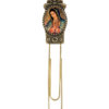 Esta pieza sirve como un adorno para las casas, oficinas o negocios. Está hecho de metal, en las partes superior e inferior, la parte central con la imagen a color es un material sintético simulando tela.