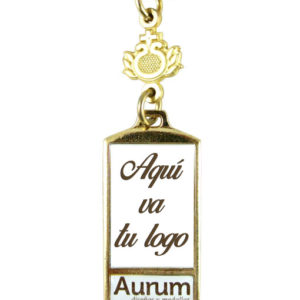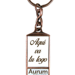 Este llavero rectángulo es hecho en metal y tiene 5 opciones a escoger para el terminado o color metálico: oro, plata y cobre antiguos; así como latón y níquel brillantes. Es un producto genérico que es apto para pedidos urgentes o exprés.