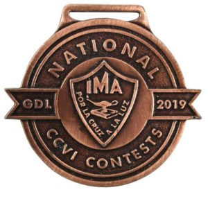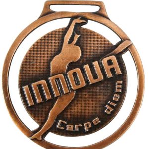 Este modelo de medallas personalizadas tienen un acabado o terminado en cobre antiguo, y se utiliza mucho para premiaciones por el tercer lugar en todo tipo de eventos.