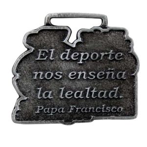 La forma de las medallas puede ser geométrica, normalmente redonda o cuadrada, pero también irregular siguiendo la silueta de tu logo o escudo o de otra figura.