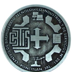 La moneda plata antigua es de metal vaciada en centrífuga, se elabora con imagen personalizada al frente y al reverso; ya sea un logo, un escudo, una figura o simplemente texto.