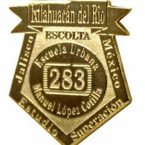 El pin dorado es de latón en técnica fotograbado o estampado, el cual es delgado y con tu logo, escudo o marca, el cual puede tener gráficos o texto.