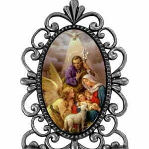 portaretrato decorativo de metal con imagen Sagrada Familia